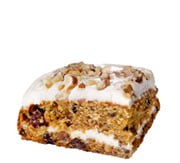 Three layers of moist sponge, walnuts, and freshly grated carrots; spiced with cinnamon and nutmeg.
